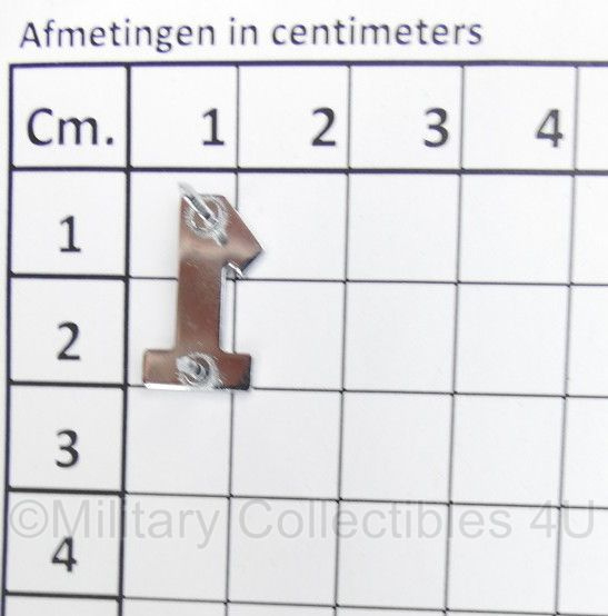 Create your accountDit is een origineel metalen cijfer voor op een epaulet. De afmeting is 2 x 1 cm.