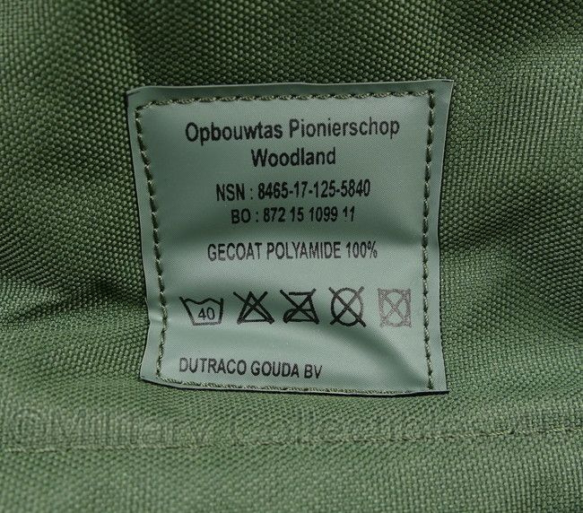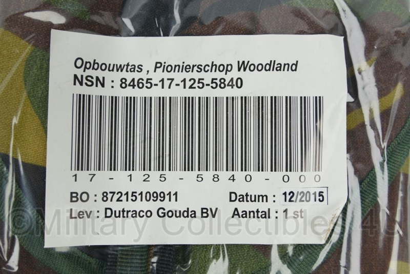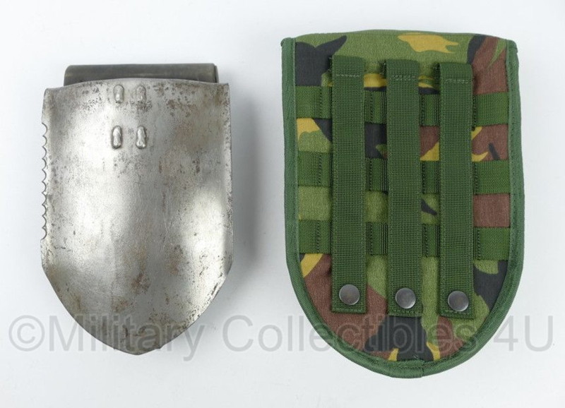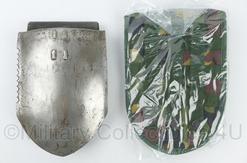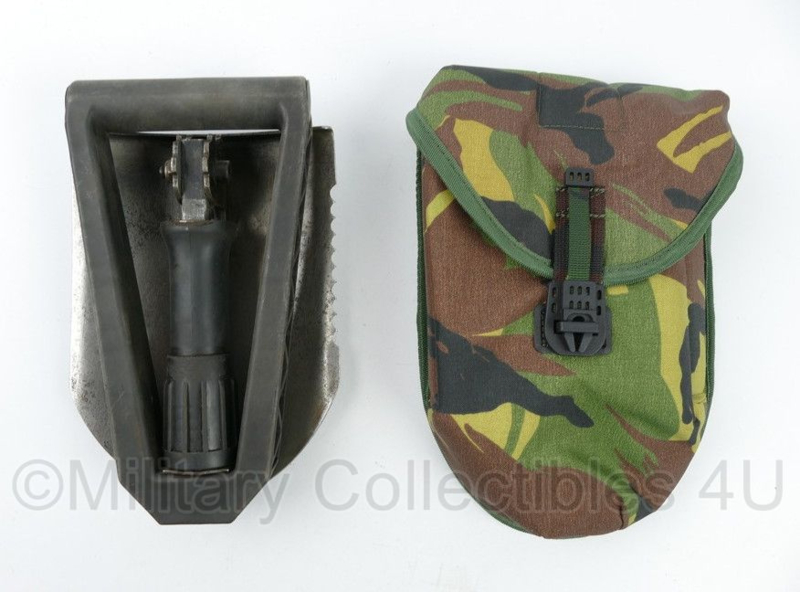 Defensie Gerber pionierschop met opbouwtas Woodland camo - schep gebruikt, tas nieuw in verpakking - origineel