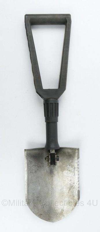 Opgevouwen is de schep heel compact doordat het in drieën gevouwen kan worden.
