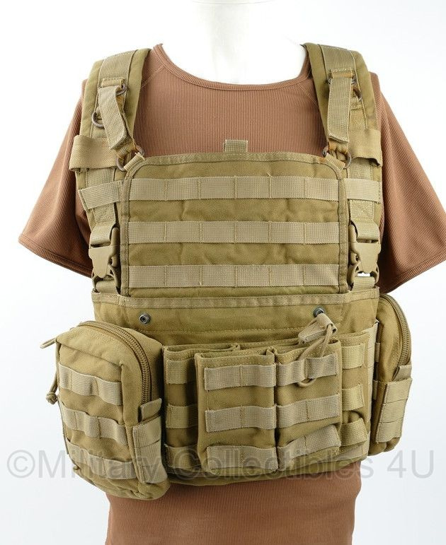Warrior Assault Systems Chestrig met 5 mag pouches & 2 utility pouches Coyote - gedragen - origineel