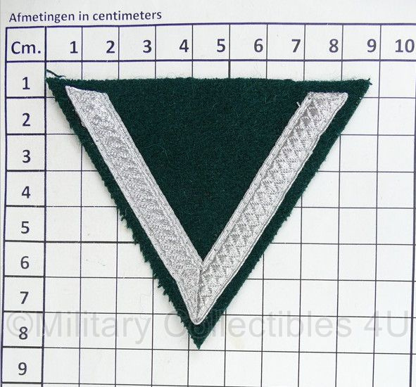 WO2 Duitse M36 Heer Gefreiter chevron donkergroen - met correcte punt - 7,5 x 9 cm