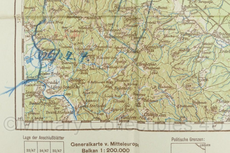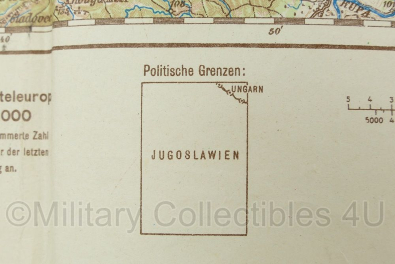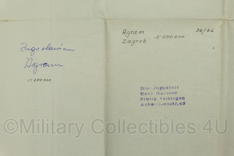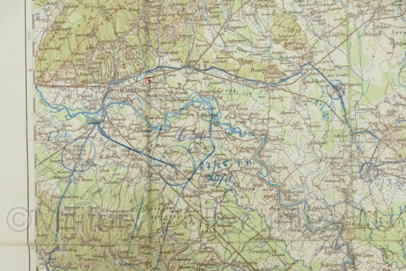 WO2 Duitse stafkaart Yugoslavien Zagreb Agram 1940 - schaal 1:200.000 - 75 x 49 cm - origineel