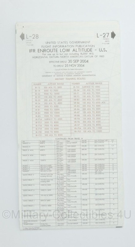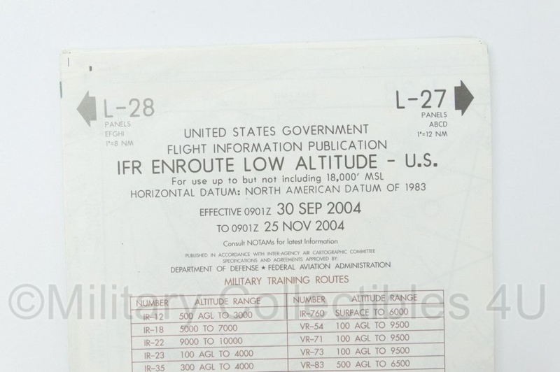 United States Flight Information IFR Enroute Low Altitude Map L27 L28 Bridgefort 2004 - 25 x 13 cm - origineel