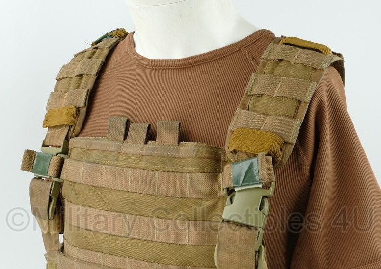 Dit is een originele Profile Equipment coyote plate carrier met backpanel voor ballistische inhoud, deze zit er niet bij. De maat is one size, hij is verstelbaar. Het vest is gedragen, maar in een goede staat.