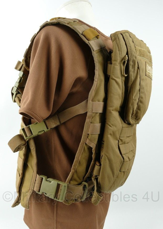 Defensie en KMARNS Korps Mariniers Profile Equipment plate carrier Coyote voor ballistische inhoud met Camelbak rugzak - gedragen - origineel