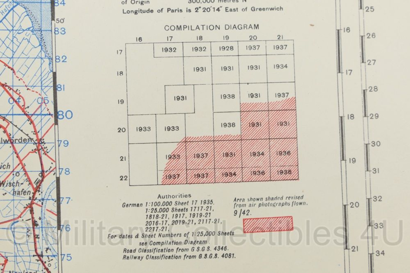 WW2 British War Office map 1944 Central Europe Cuxhaven - 83,5 x 63,5 cm - origineel