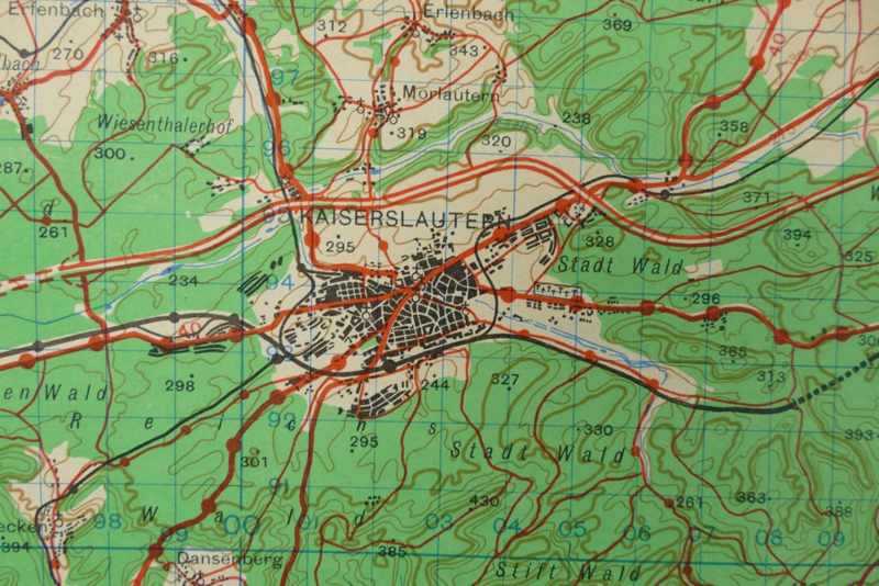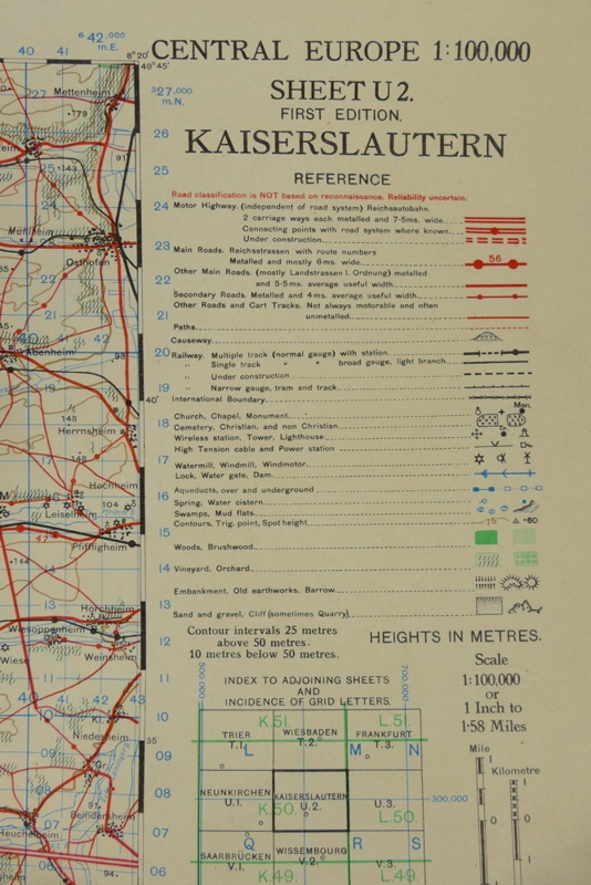 Dit is een originele WW2 British War Office map uit 1944 van Central Europe Keiserslautern.