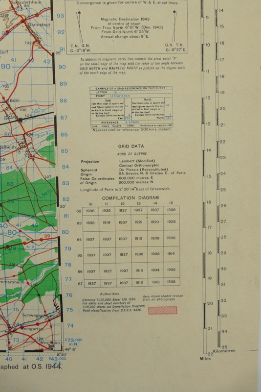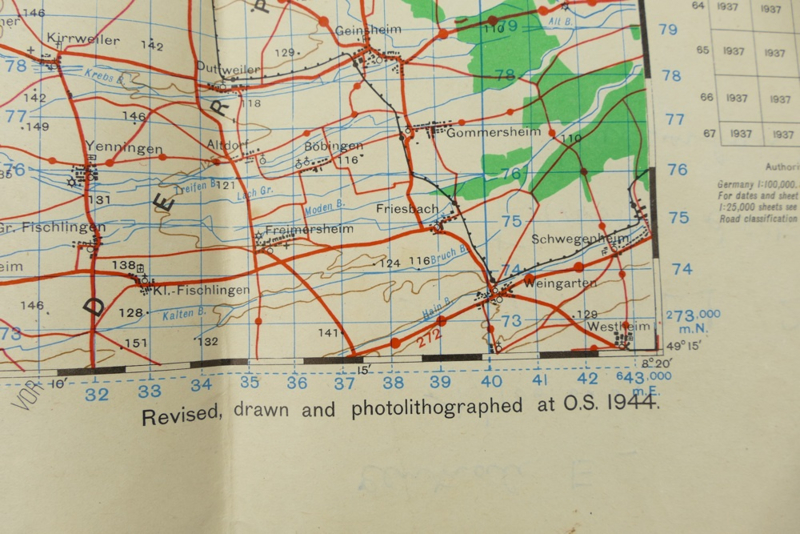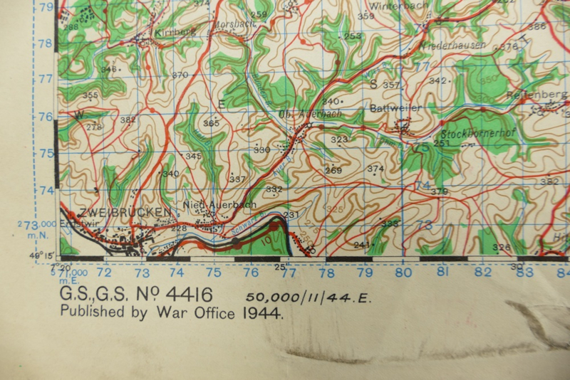 WW2 British War Office map 1944 Central Europe Keiserslautern - 88 x 65 cm - origineel