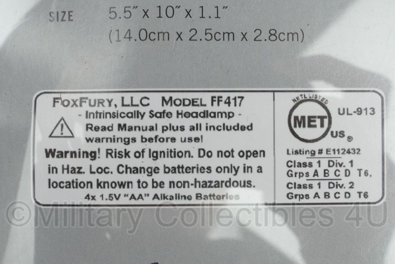 FoxFury Performance Intrinsic Tasker LED Helmet Light. The Performance is certified for IPX7, UL 913 Class 1, Division 1 Groups A, B, C, D T6 & Class 1, Division 2 Groups A, B, C, D T6