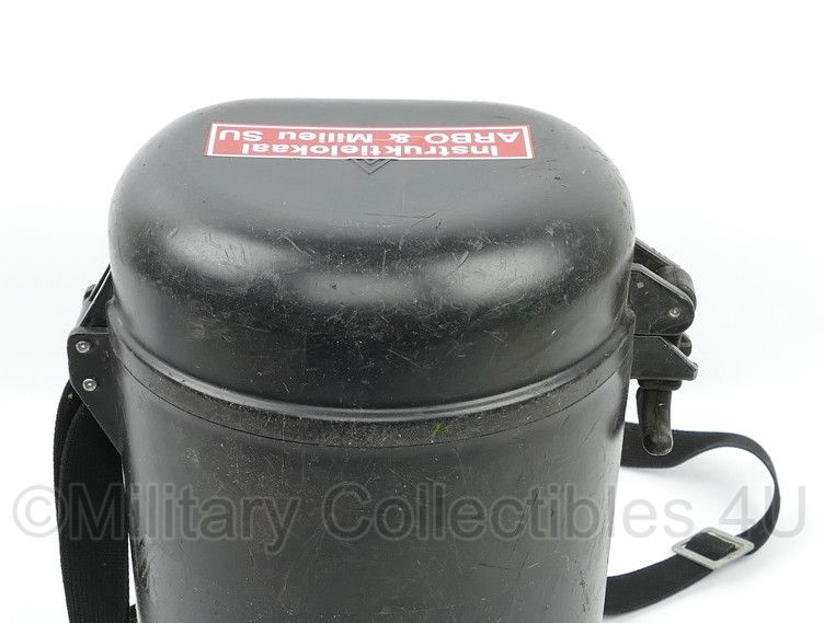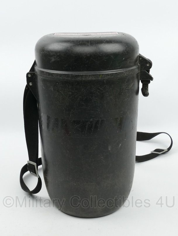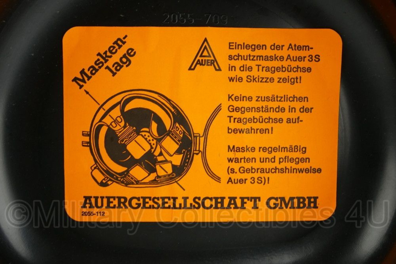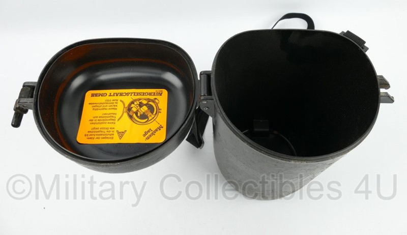 Dit is een originele gasmasker opbergbox van de fabrikant Auergesellschaft GmbH. Hij is gebruikt, maar in een nette staat.