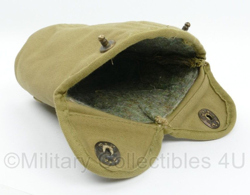 Dit is een replica van het zogenaamde "mounted" model veldfles hoes. Dit model was extra verstevigd aan de achterkant, zodat de hoes niet scheurde tijdens de sprong.