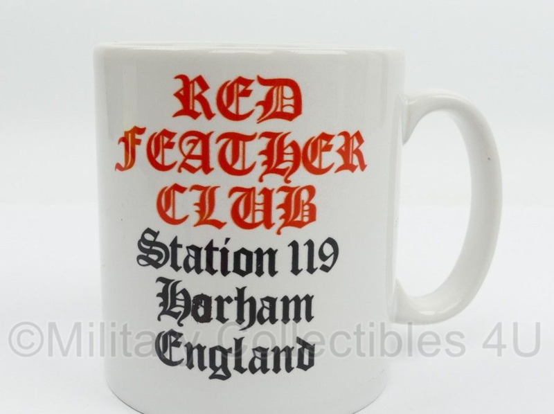 Dit is een nieuwe gemaakte 95th Bomb Group Justice with Victory drinkbeker. Achterop staat de tekst Red Feather CLub Station 119 Durham England.
