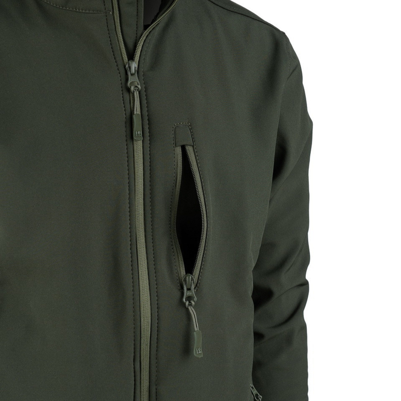 De Softshell jas is gemaakt van waterbestendig materiaal. Deze softshell jas outdoor draagt vocht af en houdt tegelijkertijd lichaamswarmte vast. Daarnaast is het jack uitgerust met een borstzak met ritssluiting.