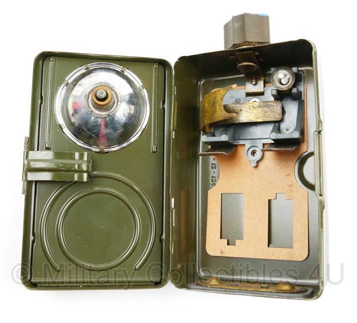 Dit is een originele Bundeswehr zaklamp met gesp. De afmeting is 6,5 x 4 x 12,5 cm (lxbxh)